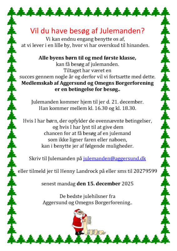 Nyheder Vil du have besøg af Julemanden, så se her…. Udgivet den november 17, 2025 af Jens Røge 17 nov